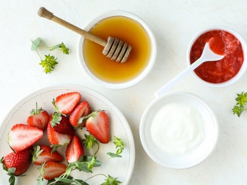 Cách làm mặt nạ dưỡng da tại nhà từ dâu tây và sữa chua như sau: