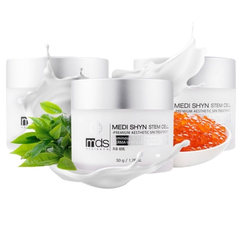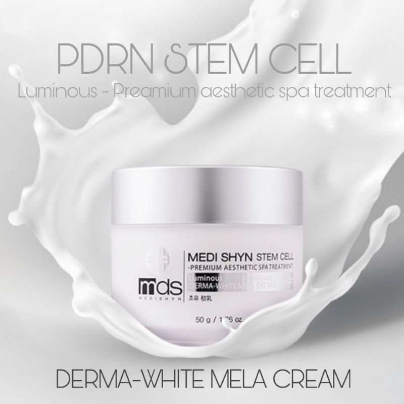 Kem dưỡng trắng da Derma White Mela Medi Shyn Stem Cell là sản phẩm dược mỹ phẩm được rất nhiều chị em tin dùng bởi công dụng 2 trong 1, vừa có tác dụng thay thế serum, vừa siêu kem tế bào gốc nuôi dưỡng và phục hồi da từ bên trong.